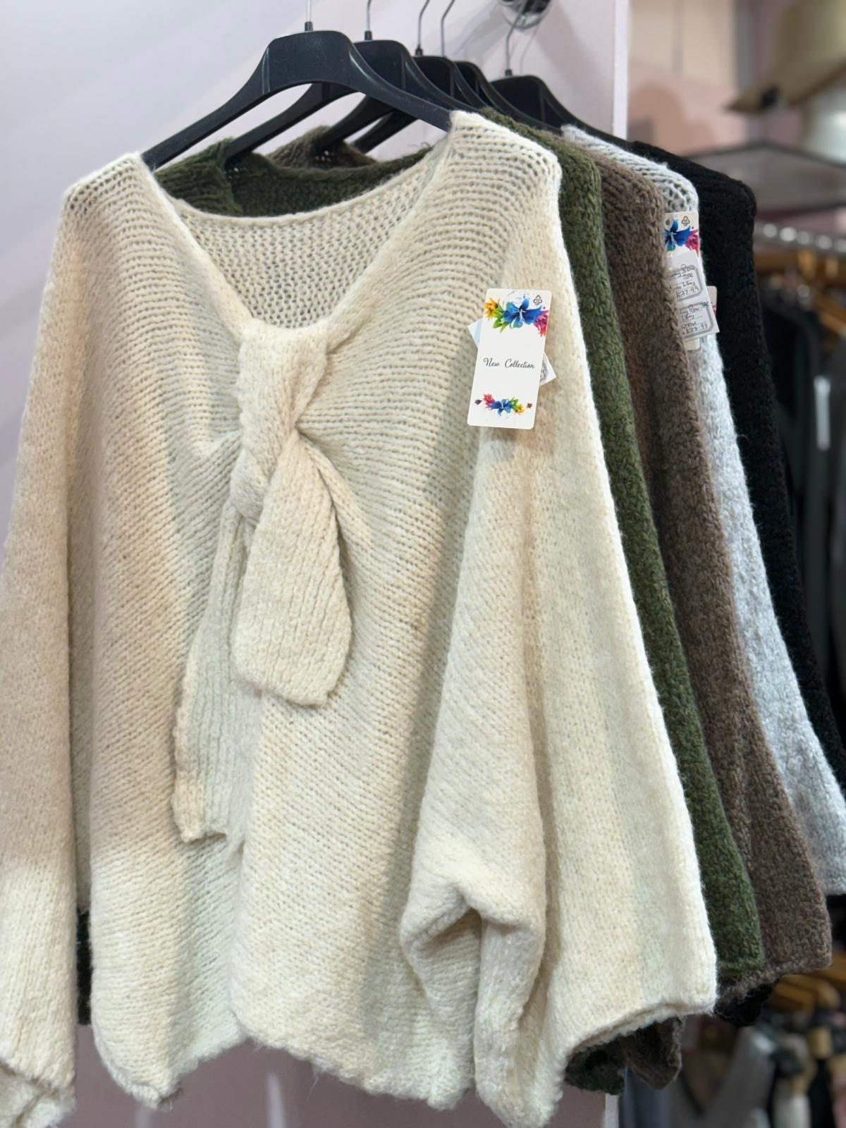 Chunky Knit Batwing Jumper with Large Bow Detail