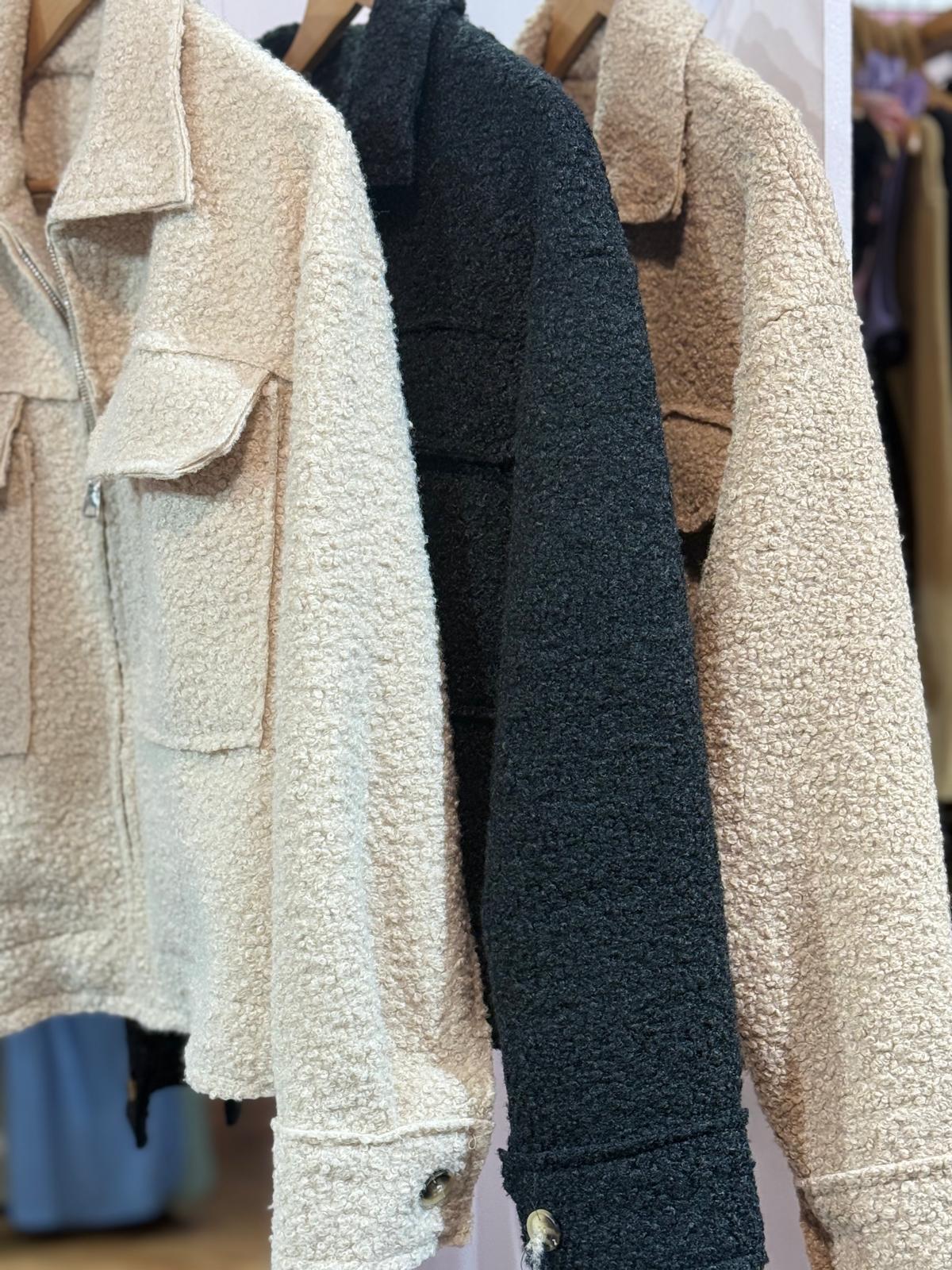 Boucle Collar Zip Jacket with Breast Pocket Detail and Working Zip
